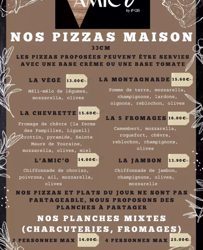 AMIC'O vous invite à découvrir un restaurant authentique et un bar convivial. Crée par Teddy Bellaire et Nicolas Juliot dans l'ancienne poste de Chenonceaux, le restaurant vous accueille du mardi au samedi en basse saison et tous les jours en haute saison.